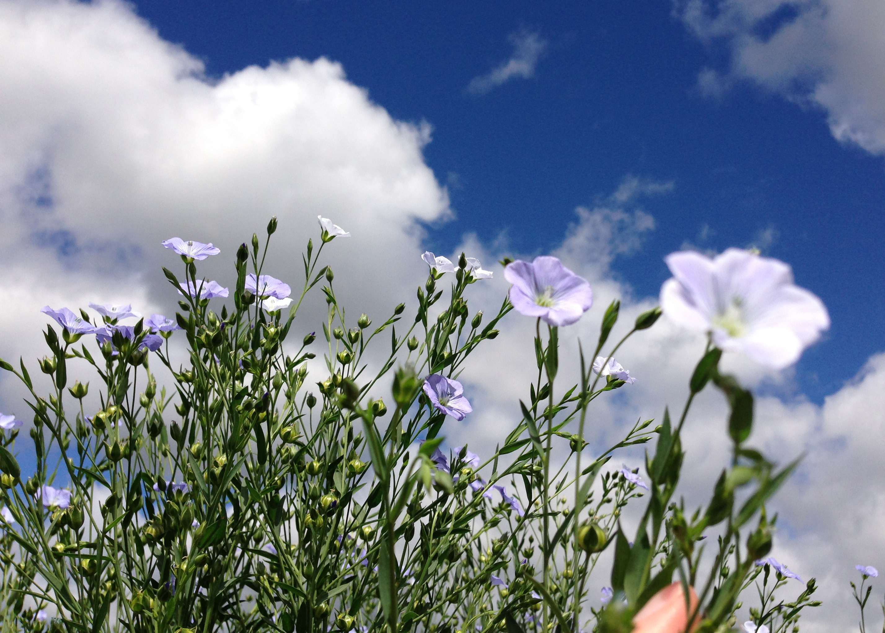 flax plant with light blue blooms