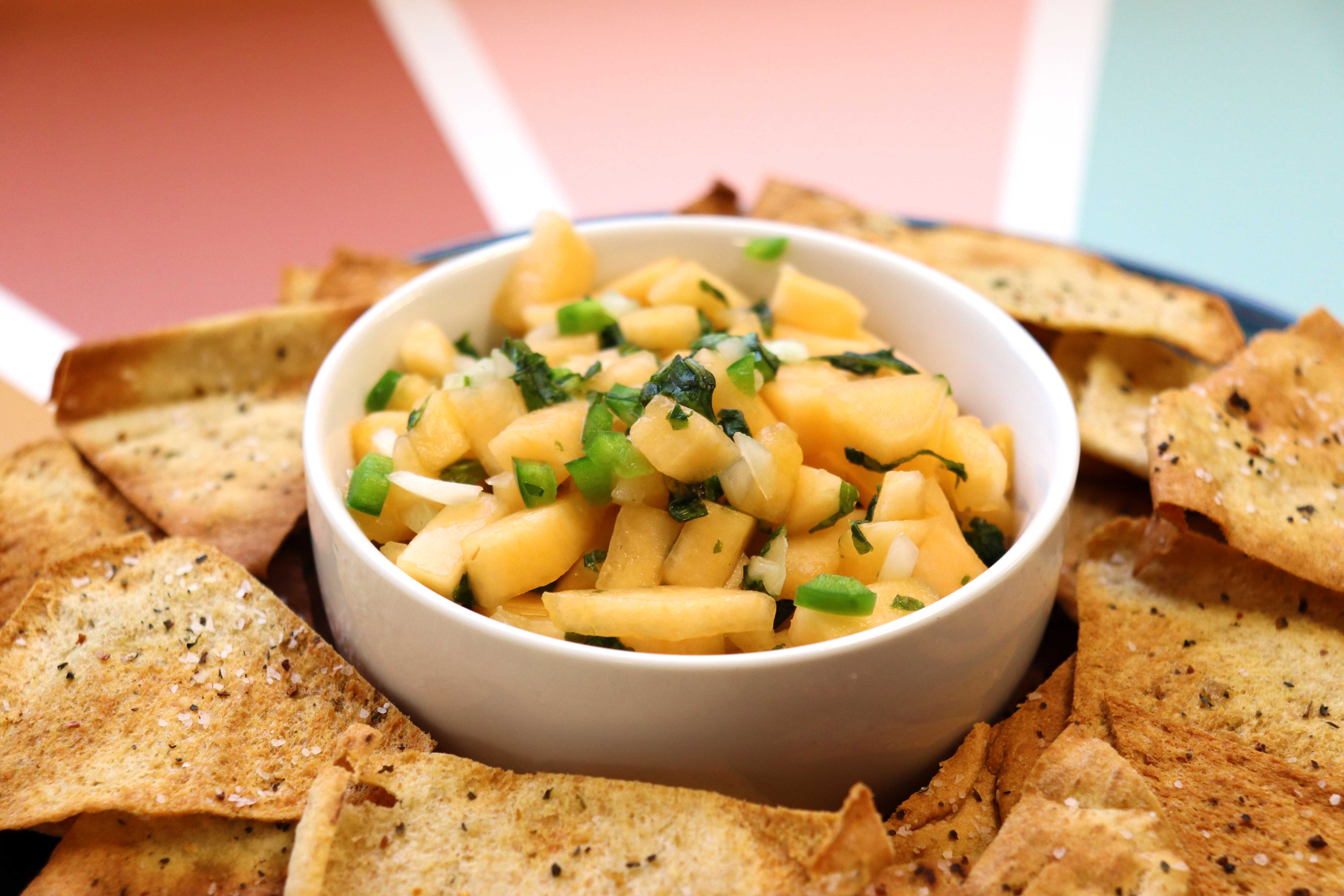 Cantaloupe Basil Salsa and Pita Crisps