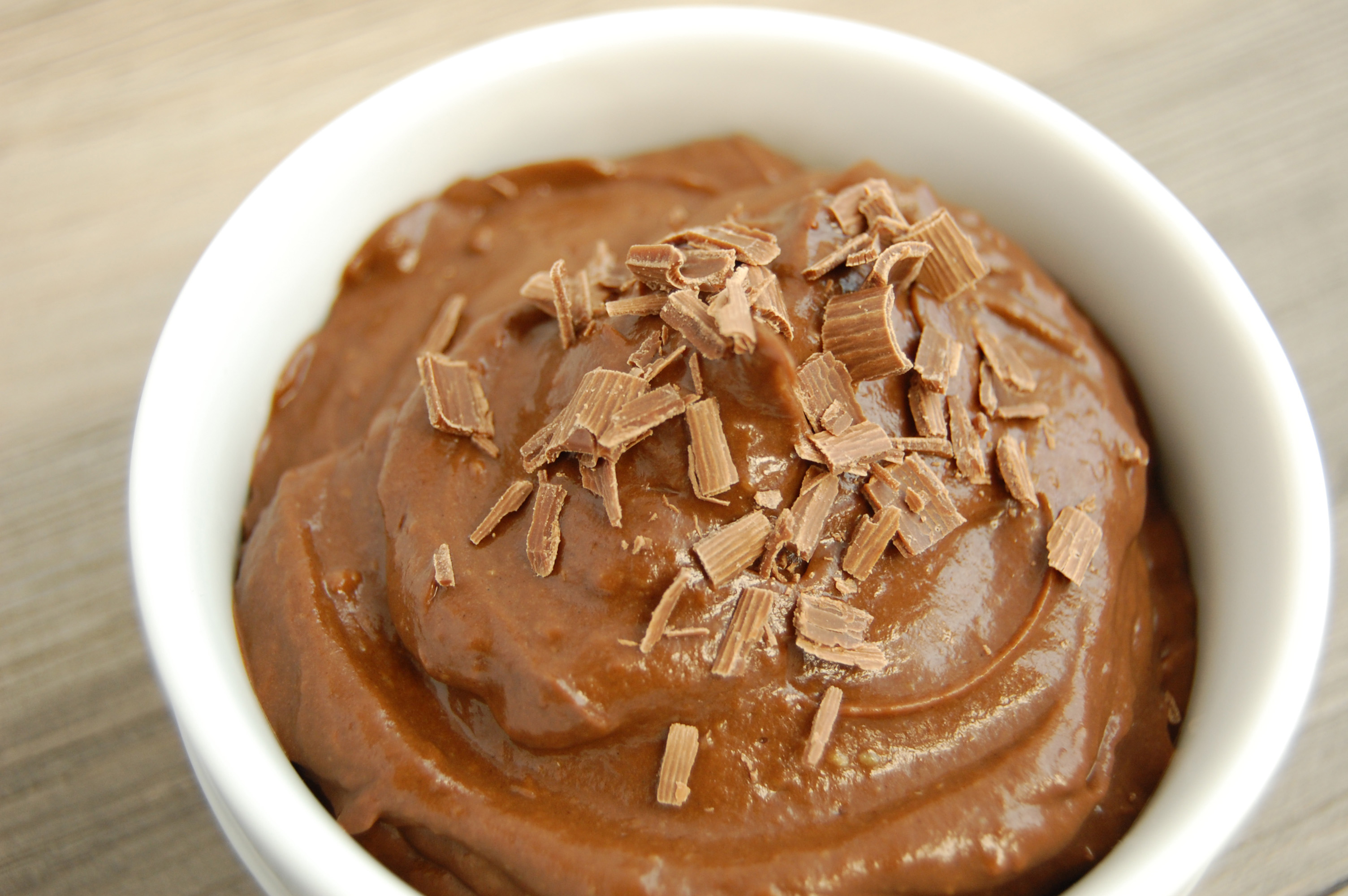 Blend all ingredients in a food processor or blender. Process until completely smooth. Transfer to a sealable container and refrigerate one hour or until ready to serve. Serve with grated dark chocolate and/or whipped cream.