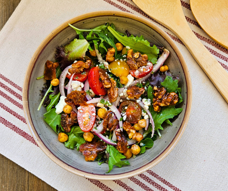 Tomato Salad with Blue Cheese and Candied Walnuts with Greens