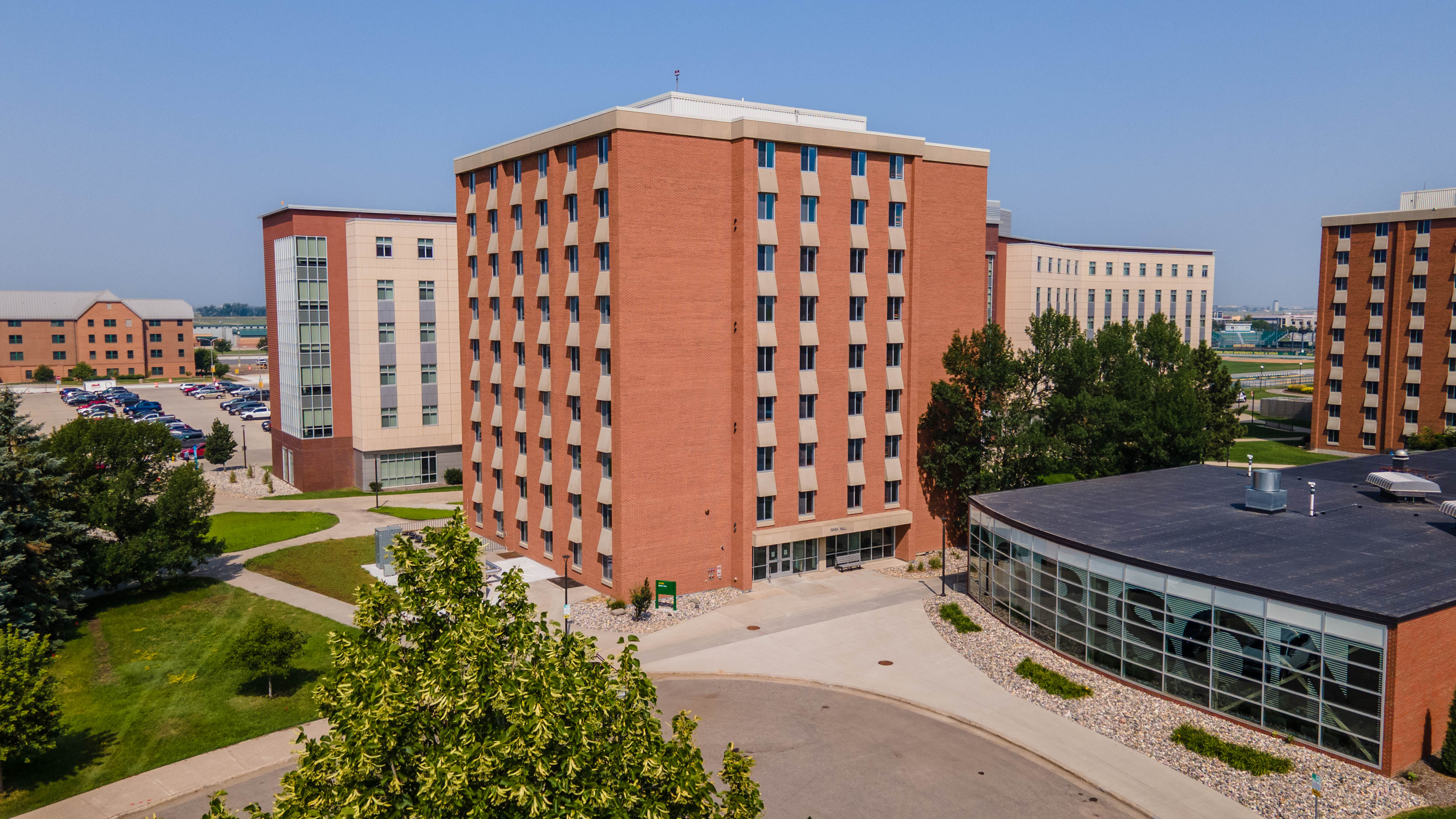 The last of the four high rises was completed in 1987 at the cost of $3.9 million. It is located in the southwest corner of the quadrangle of the high-rise residence halls. In October of 1990, the newest high rise was renamed Pavek Hall in recognition of F. Leslie Pavek, Vice President of Student Affairs. Pavek was born on May 27, 1929 in Grand Forks, North Dakota. He graduated from the University of North Dakota in 1952 with a Bachelor of Science degree. Pavek later received a masters (1960) and doctorate (1968) in education from the University of North Dakota (UND). Upon his graduation, Pavek taught Science, Math and English at Pisek, Tolna and Chaffee (all schools located in North Dakota). He later moved to Fargo and worked at Agassiz Junior High as a science teacher and counselor. In 1965, Pavek left Fargo and returned to Grand Forks to serve as Dean of Men for UND. Two years later (1967) he left and came to 线上赌博app to work in the Counseling Center. In 1968, Pavek was appointed Dean of Students. In 1974, he was named Vice President for Student Affairs. Pavek retired in 1990 after twenty-three years of service to 线上赌博app (It's Happening at State October 10, 1990, p.3).