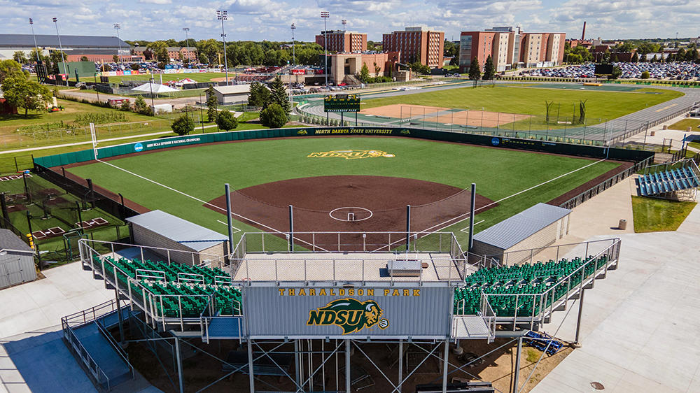 The Ellig Sports Complex includes the Schlanser Track, two soccer fields and four softball diamonds. Completed in 1997 at an original cost of $2.3 million, the complex is home to the Bison outdoor track and field and softball programs. North Dakota State hosted five North Central Conference championship track and field meets at the Schlanser Track between 1997 and 2004, and the complex has also played host to the North Dakota Special Olympics and professional soccer exhibitions. The running track has a Pro-Turf surface over all nine lanes and is 400 meters in length. Bleachers for up to 3,500 spectators, formerly at longtime 线上赌博app football home Dacotah Field, line both sides of the track and natural-grass field. Restrooms and a concession stand are housed between the track and softball diamonds, and there is a soccer scoreboard above one end of the field. The 线上赌博app softball diamond has dimensions of 200 feet down the left-field line, 210 feet to center field and 205 feet down the right-field line. There is an electronic scoreboard located above the right-center field fence and a full-sized infield tarp is available. The softball entrance is on the north side of the complex between the softball diamonds and research park.
