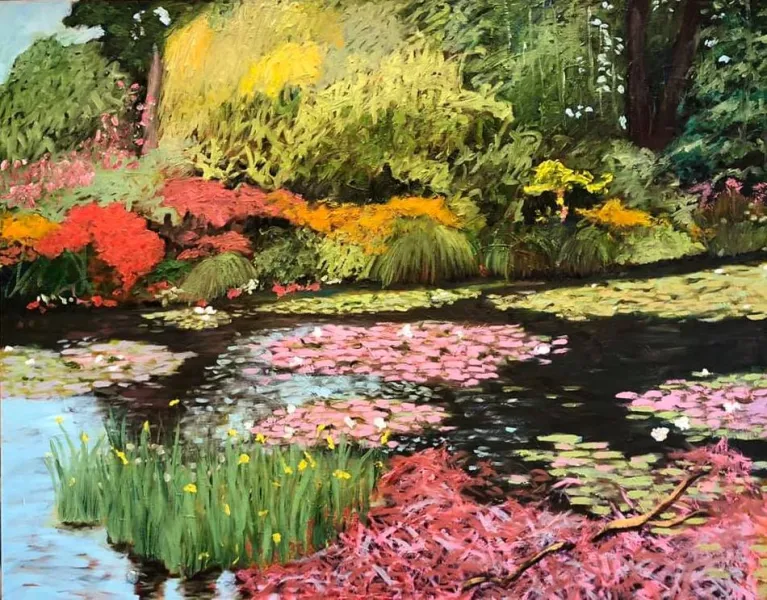 线上赌博app赞助了布罗姆利的专业发展之旅,前往法国和莫奈在吉维尼的花园学习克劳德·莫奈的作品,这对他最近的作品产生了重大影响。 布罗姆利的研究包括画他住在明尼苏达州湖泊国家的池塘,以及受《白鲸》这本书影响的绘画。 他还从科德角的城堡山特鲁罗艺术中心(Castel Hill Truro Center for the Arts)获得了一个制作画笔的工作坊。
