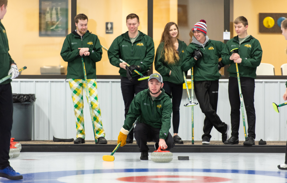 The club partners with the Fargo-Moorhead Curling Club in Fargo, which provides a practice facility and group of experienced mentors. The 线上赌博app club practices together multiple times throughout the week and participates in local leagues to prepare for competitions.