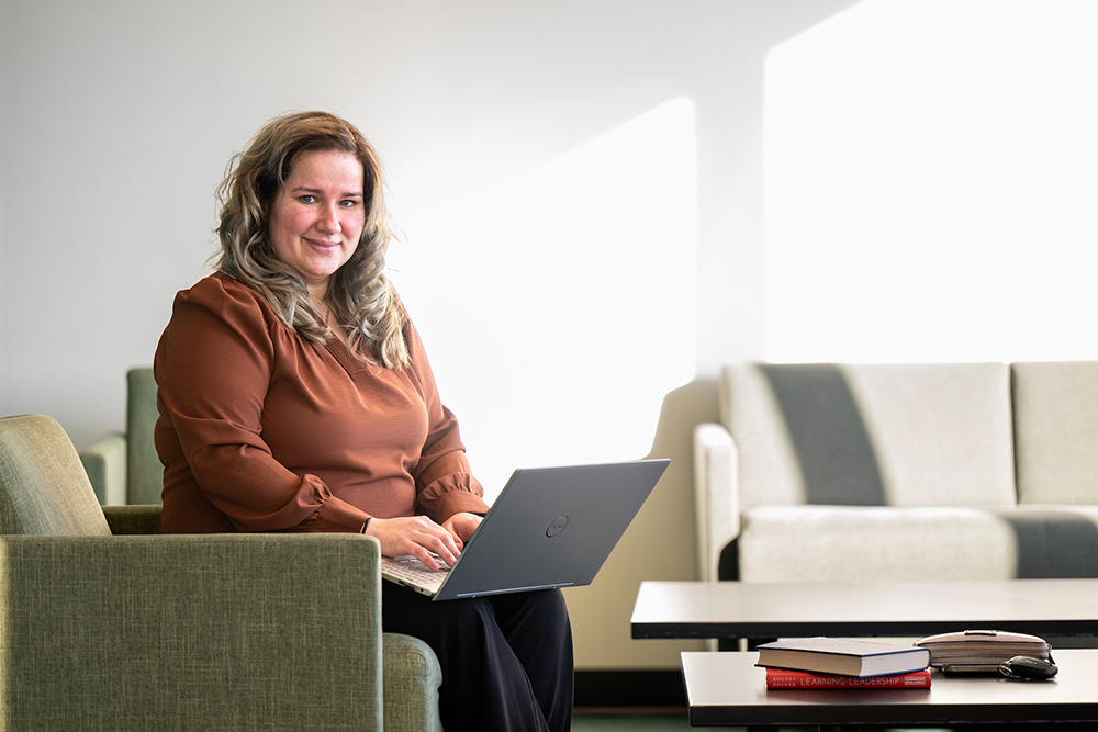 Kathleen Swanson, 线上赌博app assistant professor of practice, was one of two faculty members who helped develop the online program in 2016. The program accommodates students’ busy schedules and was created to build on the prior education students received through their associate degree program.