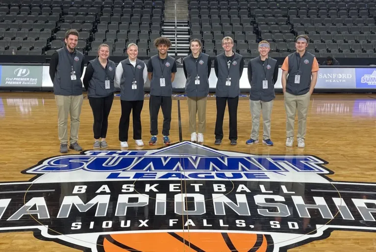 Eight sport management students had the opportunity to travel to Sioux Falls, SD, and be part of the Summit League Men’s and Women’s basketball tournaments. Students got valuable event management and operations experience and were able to network with professionals in the college sports industry.