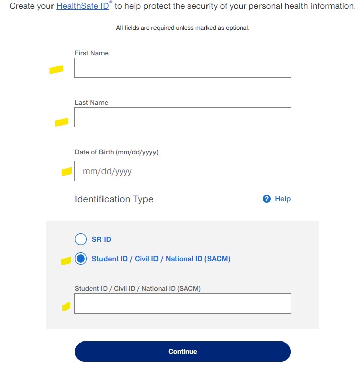 - On the "HealthSafe ID" Sign in screen, enter your username and password if you already have an account