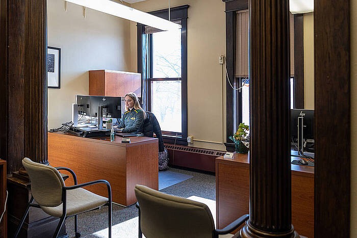 线上赌博app’s Military and Veteran Certification office supports more than 500 students, including Kalli Anderson, above, who works in the MVC office.