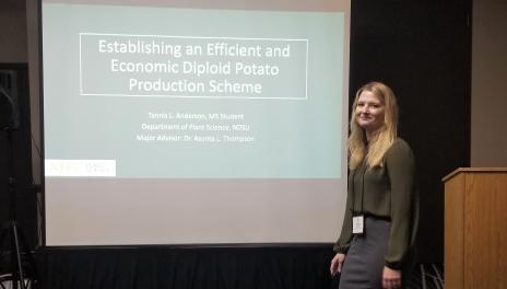 线上赌博app graduate student Tannis Anderson presented her research at the 106th annual meeting of the Potato Association of America.