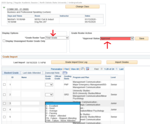 Note: Grade rosters may not be set to ‘Approved’ by the instructor if an incomplete grade is pending. These rosters will be set to ‘Approved’ and posted after the ‘I’ grade is entered by Registration & Records.